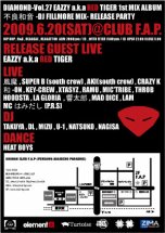 いよいよ待ちに待った週末が近づいてまいりましたぁ!! そうです!!今週末20日土曜!!!マチガイなく輝いてるあのイベント!!!! ☆★DIAMOND★☆ 今回も俺ら風魔がバイブス満タンでお届けするこのPARTYは絶対にCHECKするべし!!!! F.A.Pの10周年にあたるこの2009年!! DIAMONDもそれを祝うかのごとく輝きを増し続け前回の動員数は250人を記録!!まさにウナギのぼり状態のこのDIAMONDを皆様も是非お見逃しなく!!!! 詳細はこちら↓↓ 『DIAMOND-Vol.27』 EAZZYa.k.aRED TIGER 1st MIX ALBUM 『不良和音-DJ FILLMORE MIX-』 REALEASE PARTY @F.A.P 6/20(Sta) HIP HOP,R&B,REAGGAE,REAGATTON ADM2000/1D WITH F1500/1D OPEN22:00-05:00CLOSE REALEASE GUEST LIVE EAZZYa.K.aRED TIGER LIVE 風魔,SUPER B(south crew),AKI(south crew),CRAZ\ K,和-ON,KEY-CREW,XTASYZ,RAMU,MIC'TRIBE,THROB,HOODSTA,LA GLORIA,響太郎,MAD DICE,LAM,MCはみだし(P.R.S) DJ TAKUYA,DL,MIZU,U-1,NATSUKO,NAGISA DANCE HEAT BOY$ 【GUESTインフォメーション】 - EAZZY a.k.a RED TIGER 1st.MIX ALBUM - 『不良和音-DJ FILLMORE MIX-』 13曲入り、6月3日水曜日発売 SHOP : \1953-(税込み) LIVE会場 : \1300-(税込み) 1300枚限定発売 「TINTOY RECORDZ」 ADD : tintoy045@yahoo.co.jp www.myspace.com/eazzyakaredtiger (詳細はMYSPACEをチェック) 【FU-MA情報】 http://www.myspace.com/fuma134 【FU-MAブログ】 http://fuma.kakurezato.com/ 【club F.A.P】 http://www.club-fap.com/ 皆さん是非遊びにきて下さいね☆ 要連絡でゲスト取れますよ★ PR |