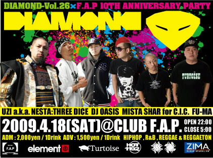 湘南club F.A.Pの10周年記念イベント【DIAMOND】!!!! 思うんだけど、10周年って一言で言ってるけど、clubで10年持続するってかなり凄い事だよね。 特にこの湘南って土地柄での10年は本当に価値のある事だと思う。 俺も今まで何軒かのclubがなくなってくのを見てきただけに、感動すら覚えるよホント。 もし共感した人がいてくれるなら、是非この10周年記念イベントを祝いにきて欲しい。 今回はそれにふさわしいSpecial Guestも招待してます! U.B.G結成からのメンバーであり、圧倒的な存在感を見せる、孤高のONE MIC【UZI】!!! そしてあのキングギドラでDJ、MC、プロデューサーとして活躍したHipHopを知り尽くした男【DJ OASIS】!!! そして今までF.A.Pと共に走り続けてきたアーティスト達がガンガン出演するんで、マチガイナイ夜になる事は誰が見ても明白!!! ぜってぇ見逃すな!! 詳細はこちら↓↓ ~DIAMOND-Vol.26×F.A.P 10周年 ANNIVERSALY PARTY~ @F.A.P お問合せ先 TEL:0466-27-6810 担当:SINN 住所 〒251-0054 神奈川県藤沢市朝日町14-1犬塚ビル2F http://www.club-fap.com/ 4/18(土)第3土曜日 OPEN21:00-CLOSE05:00 ☆HIP HOP.R&B.REAGGAE.REGAETTON☆ ADM2500/1D ADV2000/1D SUPPORTED BY ZIMA/@F.A.P/HOT1192/TURTOISE/ELEMENT ■SPECIAL GUEST LIVE UZI a.k.a NESTA:THREE DICE ■SPECIAL GUEST DJ DJ OASIS for Atomic Bomb ■GUEST DJ MISTA.SHAR for C.I.C ■LIVE 風魔,SOUTH CREW,KEY CREW,RAMU,MIC'TRIBE,BAZOO,響太郎,XTASYZ,MAD DICE,KENZERO,はみだし(P.R.S) CREW-[RADIO134/大地,THROB,LA GLORIA] CREW-[HOODSTA/SPIN A,佐助,WILLOW B,JACK STONE,DJ MOTOYASU,DJ 譜”流] CREW-[我道/SHO-1,IJOFF,DINALY DELTA FORCE,ARMA,MIGHTY BLOW] ■DJ TAKUYA.DL.MIZU.HIDE-LOW.NATSUKO.NAGISA. ■DANCER HEAT BOY$ ■SHOW GIRL TOKYO PARTY★TIME 皆様ぜひF.A.Pの10周年をお祝いしに来て下さい★ お待ちしております! m(_ _)m 風魔MySpace http://www.myspace.com/fuma134 風魔全国配信 http://monstar.fm/fuma PR |
